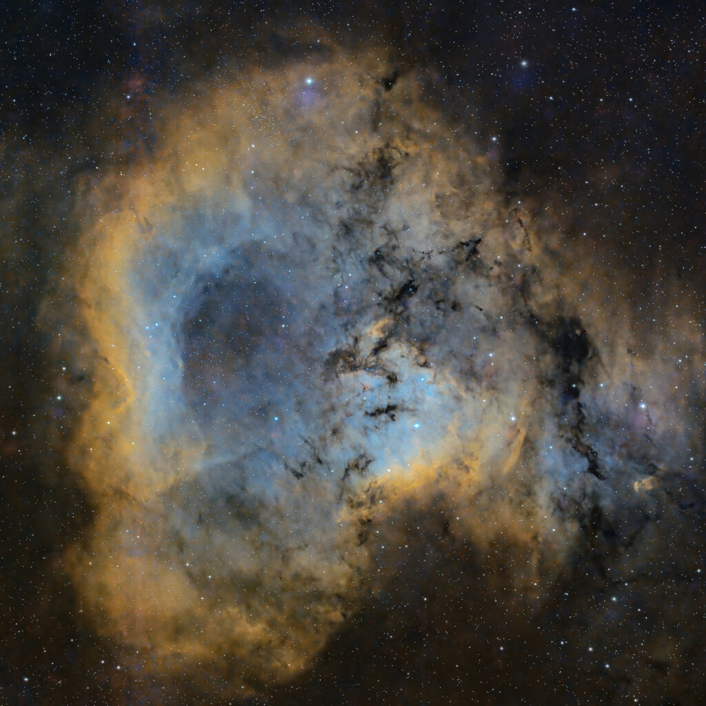 – Cover image of the War and Peace nebula by Pfirter. It iss a star-forming region in the Milky Way, situated in the constellation Scorpius. It comprises young stars, ionized gas and dust, and is a site of active stellar birth and intense radiation. –