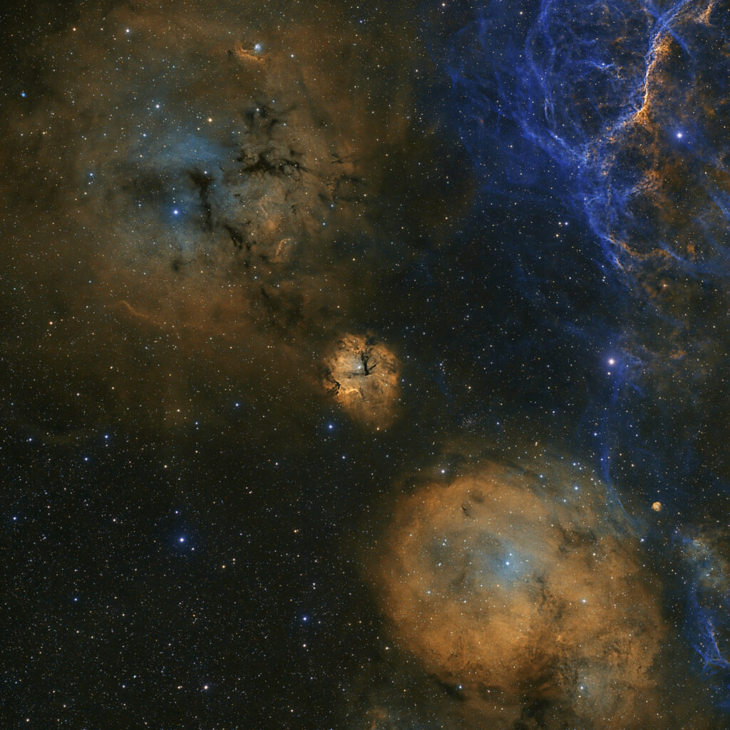 NGC 2442, also known as the Meathook Galaxy, is located about 50 million light-years away in the constellation Volans. The distorted shape of the galaxy is the result of a close encounter with a smaller, hidden galaxy.